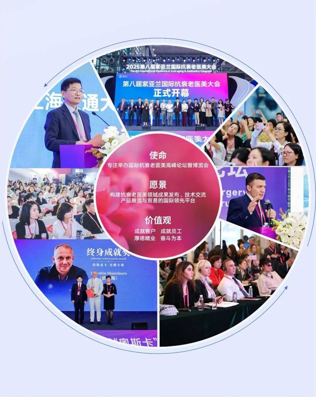 紫亚兰国际抗衰老医美大会 (简称紫亚兰国际大会) 以此命名,意在传承和发扬深圳创新务实的精神,构建全球抗衰老医美产业展示与交流的领先平台,助力抗衰老医美产业高质量发展。自2017年创办以来,紫亚兰国际抗衰老医美大会已连续举办八届,吸引来自全球100多个国家和地区的85000多名专家学者、医生及从业人员参与,其中2400多位卓有建树的专家学者在紫亚兰大会发表了学术演讲。大会更汇聚了1500多家知名品牌参展,成功发布826款新品,成为引领行业发展的风向标。